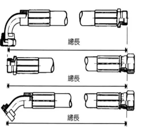 軟管總成長(zhǎng)度:軟管總成長(zhǎng)度是從一個(gè)軟管接頭端面到另一個(gè)軟管接頭端面的水平距離。這個(gè)長(zhǎng)度允許±1%的制造誤差。如果長(zhǎng)度過(guò)長(zhǎng),會(huì)影響外觀并增加成本;如果長(zhǎng)度過(guò)短,軟管在受壓伸展或壓縮時(shí)沒(méi)有足夠的伸縮余地,可能會(huì)導(dǎo)致軟管被破壞。